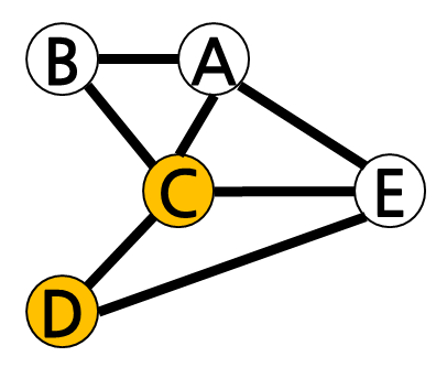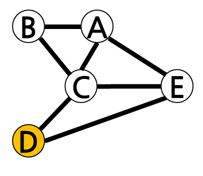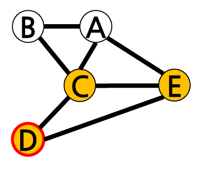먼저, 큐에 d를 삽입하고 방문처리를 해준뒤, d의 인접 정점들(c,e)을 모두 차례대로 큐에 추가하며 방문처리를 해준다. 그리고 d를 큐에서 뺀다. 탐색현황(d->c->e) 현재큐: c e