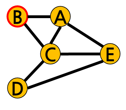 a의 인접정점들 중 방문처리 되지 않은 정점들(존재X)을 큐에 추가해주고 방문처리를 해준다. 탐색현황(d->c->e->a->b) 현재큐: b