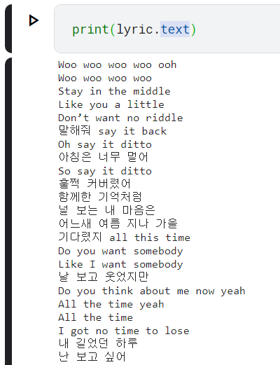 이번 시간에는 저번시간의 내용들을 바탕으로 실제로 노래가사를 추출하는 작업을 해보도록 하겠다.