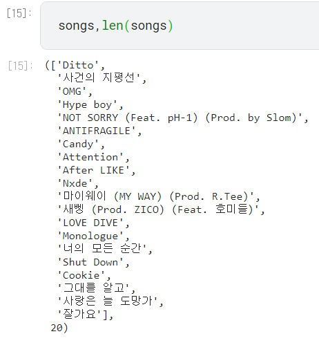 이번 시간에는 노래 하나에 대해서만 수행했던 작업들을 차트의 모든 곡들에 대해 수행하고