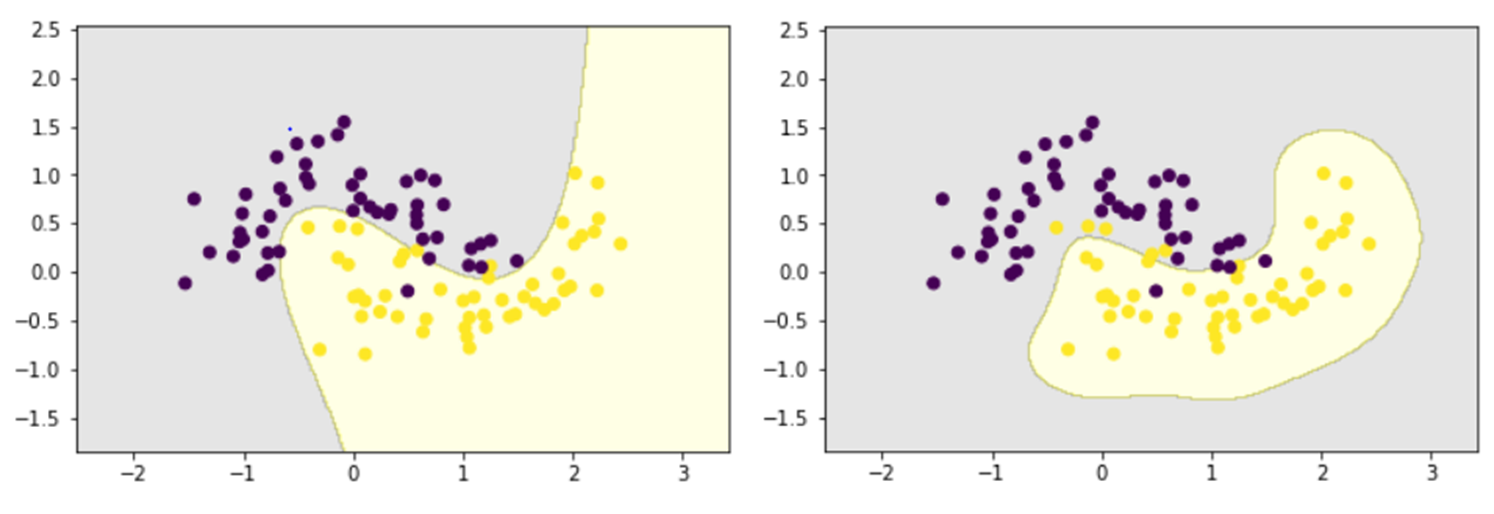 | C | 감마와 비슷하게 동작한다. 오류를 얼마나 허용할 지에 대한 수치. C가 클수록 오류를 적게 허용하고, 낮을수록 오류를 많이 허용한다.(규제항) |