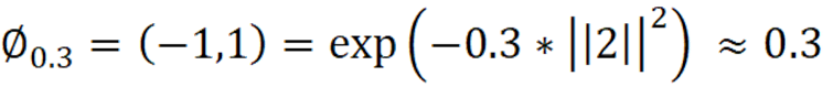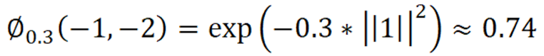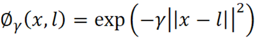 가우시안 RBF 커널은 유사도 함수로써 가우시안 RBF를 사용한다. 가우시안 RBF는 다음과 같다.