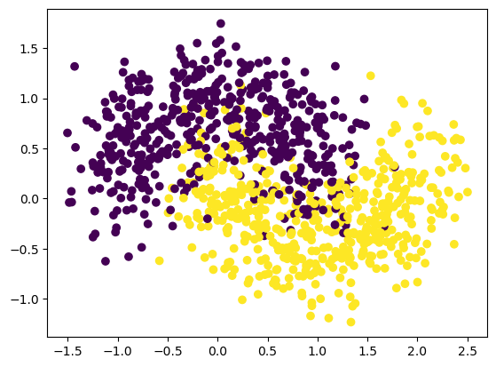 X,y = make_moons(n_samples= 1000, noise = 0.3,random_state=2021)