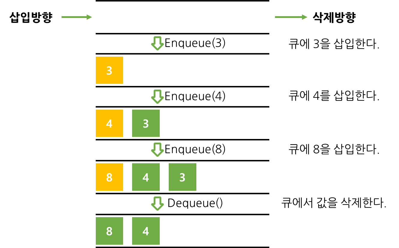 Enqueue(삽입): 큐의 삽입방향으로 값을 삽입
