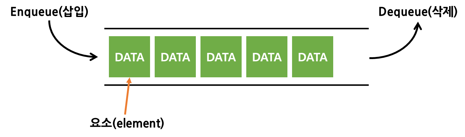 큐는 한쪽 방향으로 데이터가 들어오고(삽입) 다른 반대방향으로 나가는(제거) 자료구조이다.
