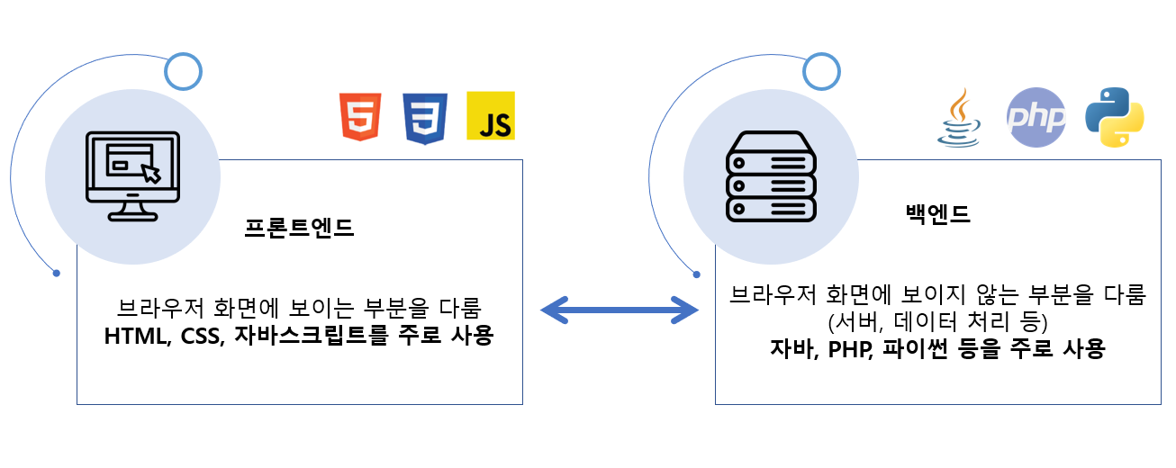 보여주는 것 이외에 서버의 처리를 위해서는 Node.js, Java, Python, PHP 등의 언어를 사용해 백엔드개발을 할 수 있다.