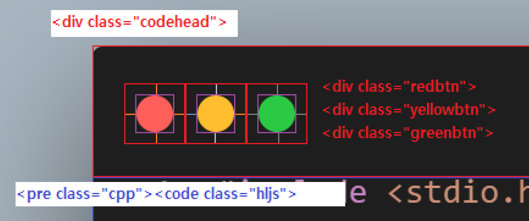 이 codehead 부분을 기존의 코드블럭인 <pre><code> 위에다 붙여주는 모양으로 디자인할 예정이다. 즉, 아래와 같다.